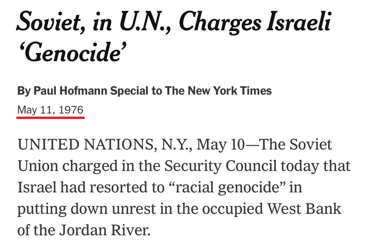 Everyone is accusing Israel of genocide. However, as the Arabs like to say, it didn’t start on October 7. For example, here’s a headline accusing Israel of genocide from 1976. Ironically from the nation that has committed the most genocides in European history: